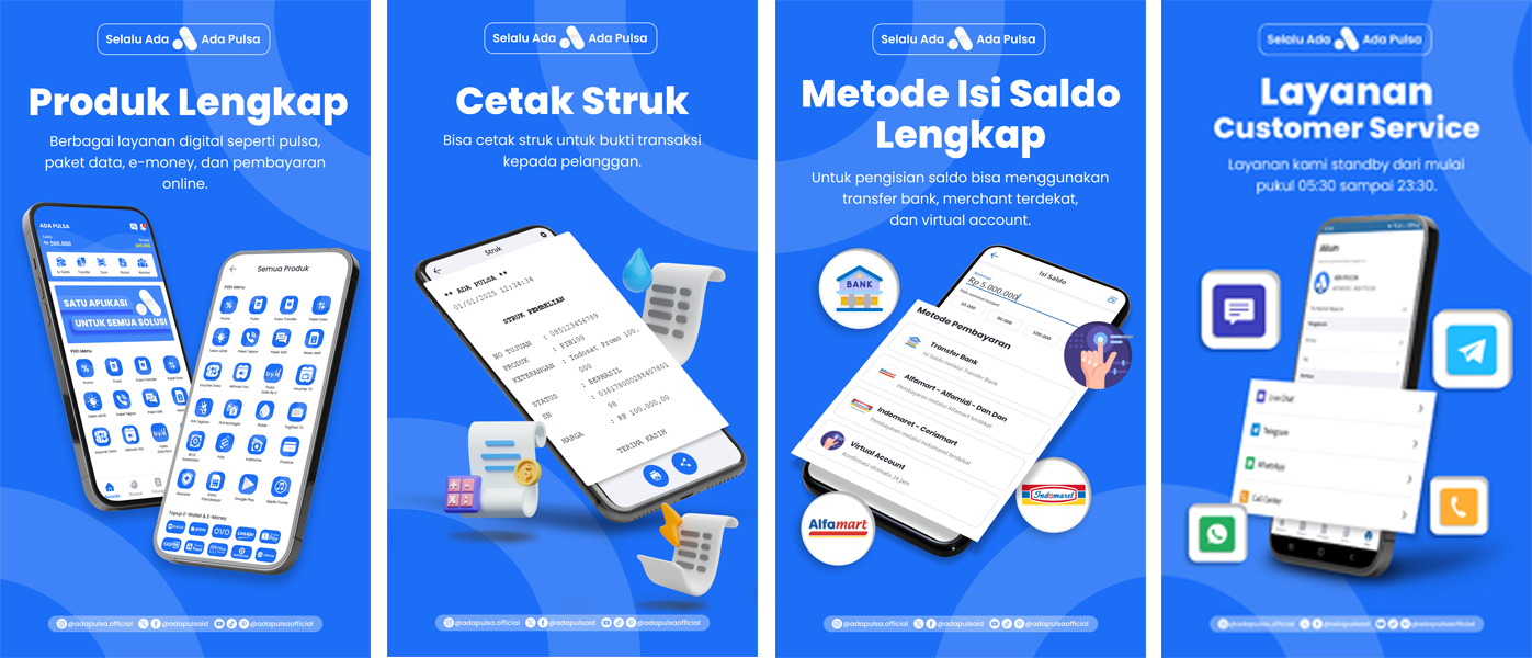 Ini adalah aplikasi mobile gratis untuk member-member ADA PULSA, di mana pun berada. Aplikasi ini memudahkan Anda dalam melakukan berbagai transaksi: